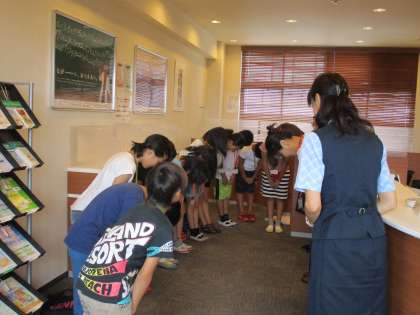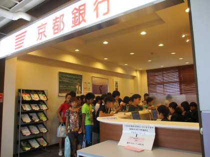 京都銀行は、毎回お給料が振り込まれると、全員が利用する場所です。たくさんのお客様が来て、大忙しでしたが、素早く丁寧に対応していました。