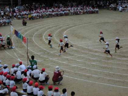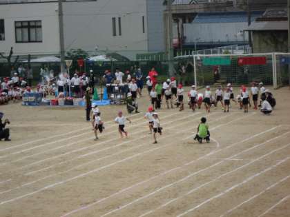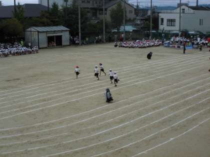 2年生の50m走です。昨年より速くなった姿を見てもらいました。