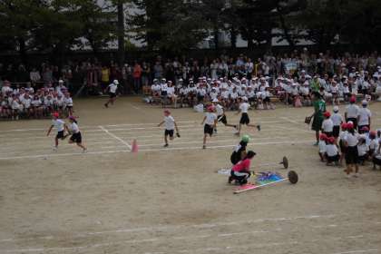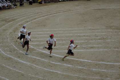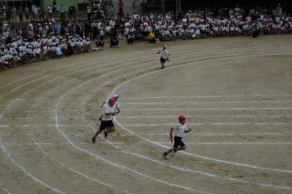 運動会の最後の得点種目のリレーです。5年生代表が力いっぱい走りました。