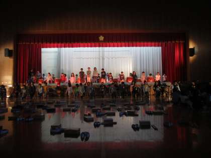 体育館での通し練習を行いました。だんだん息もそろってきています。「どーん」と体中に太鼓の音が響くように、しっかり一音一音大事にしています。気持ちのこもった演奏ができるようにラストスパートがんばります。