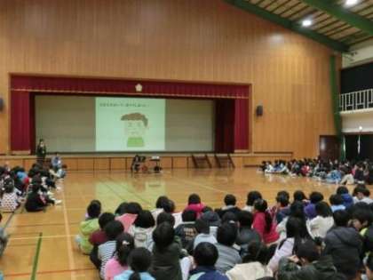 12月は人権月間です。7日(水)の1時間目には,わかば学級・1年生・2年生・3年生が体育館に集まり,人権集会を行いました。校長先生のお話を聞いた後,具体的な場面を提示して,この時にはどのような声かけをすればよいか,みんなで考えました。