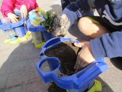 根を切らないように,そっと土のおふとんの中へ入れました。
