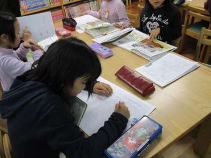 子どもたちは第2図書館の本を使って調べたり,友だちと見つけた行事を交流したりして学習しています。