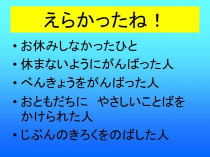 私は,この9か月を「とても早かった。」と感じていますが,子ども達はどうでしょうか?