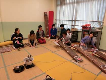 女性会の方々にお世話になっている,茶道部と邦楽部がコラボで新春お茶会を開催しました。