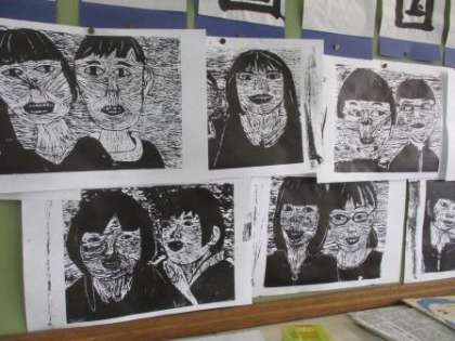 版画の作品が出来上がってきました。友だちのいい顔が表現できたのではないでしょうか。