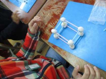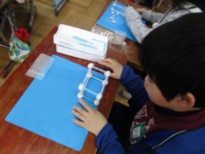 頂点の数や辺の数を意識して,粘土玉とストローではこの形を作りました。