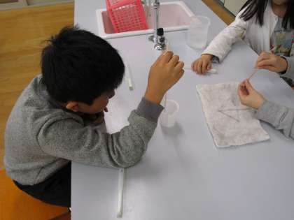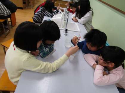 理科室で温度計の使い方を学習しました。今後理科室で実験をすることが増えていきます。楽しく,真面目に,安全に実験に取り組んでほしいと思います。