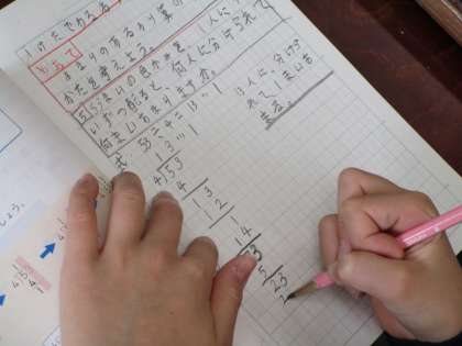 算数では「1けたでわるわり算の筆算」の学習に取り組んでいます。初めてのわり算の筆算はとまどうことも多いですが,しっかりマスターしてほしいと思います。合言葉は「たてる かける ひく おろす」ですよ♪