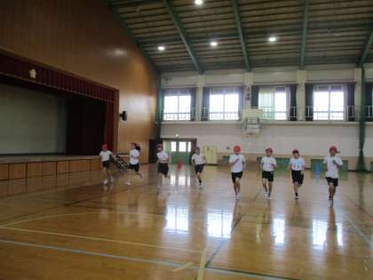 シャトルランをしました。昨年よりもいい記録が出せたようです。100過ぎまで頑張れる子も増えました。
