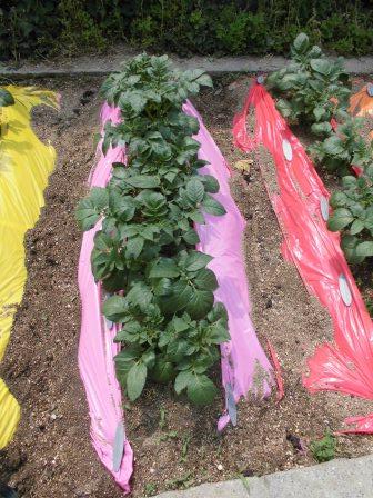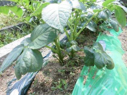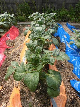 ゴールデンウィークの間にいっきにジャガイモの芽が大きく育ちました。大きなジャガイモができるように間引きをしました。