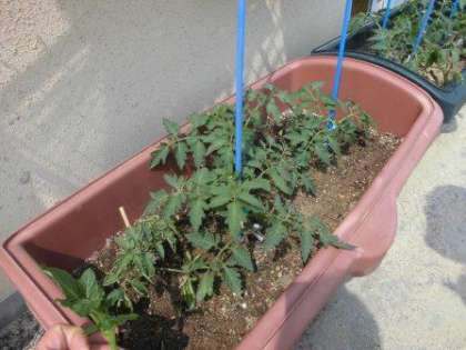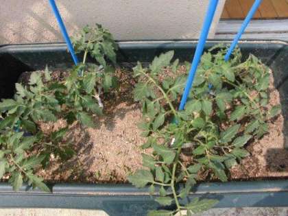 わかば学級の教室の前のプランターにトマトを植えました。花が咲き始めました。あと少しで収穫です。楽しみです。
