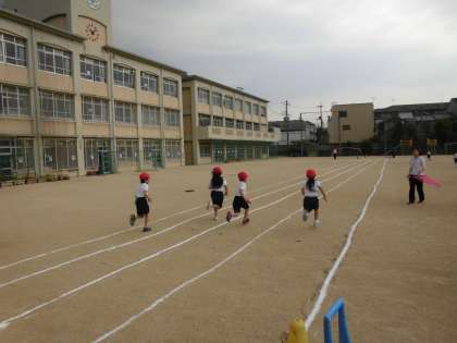 体育の授業で,50メートル走をしました。最初から最後まで一生懸命走り切りました。これから少しずつ体力をつけて,タイムを伸ばしていけるといいですね。