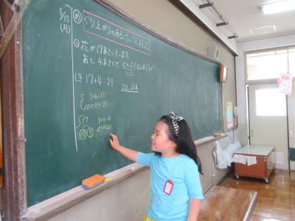 算数で「たしざんとひきざん」の勉強をしています。今日は10や20などのまとまりを考えて計算する方法を学習しました。