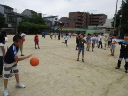 中間休みに,みんな遊びをしました。今回は,ドッジボールでした。またやりましょうね。