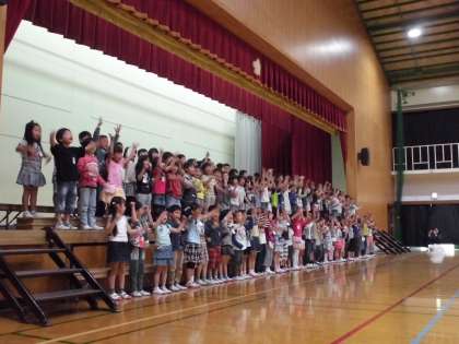 またそのお礼に,1年生からも歌やことばを発表しました。「さんぽ」の曲を踊りながら,一生懸命歌いました。これからも色んな学年の人と仲良くなってほしいと思います。