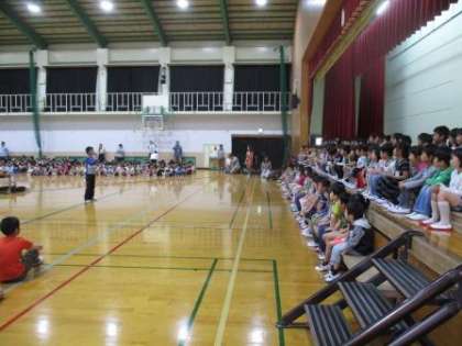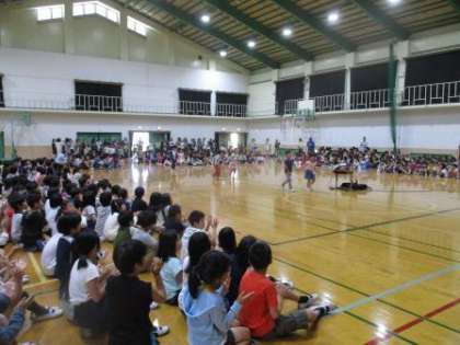 18日(木)の3時間目に体育館で1年生のお迎え集会が行われました。大きな拍手の中,1年生が手をつないで入場しました。そのあと,各学年から歌・ダンス・劇・お祝いの言葉など,色々なプレゼントがありました。1年生からはお返しの歌「さんぽ」がありました。昨年までよりもさらに深草小学校が良くなるように,みんなで協力してほしいと思います。