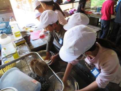 ごはん係は,お米を研いでいます。