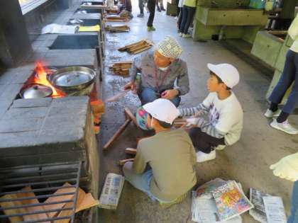火の係は,一生懸命火をおこして,火の調整をしてくれています。