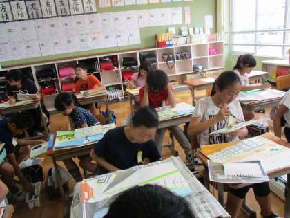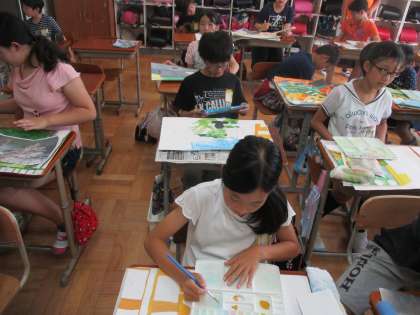 2・3組は図工です。一筆一筆、丁寧に塗っています。今まで学習してきたことを活かして、頑張って仕上げてほしいなと思います。