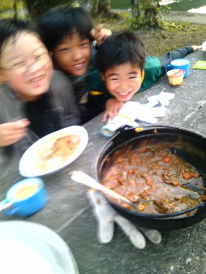美味しいカレーが出来上がりました。みんなおなかを空かしていたのかおかわりしていました。