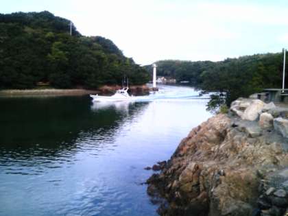 朝早くから深谷水道を漁船が漁に出て行きました。