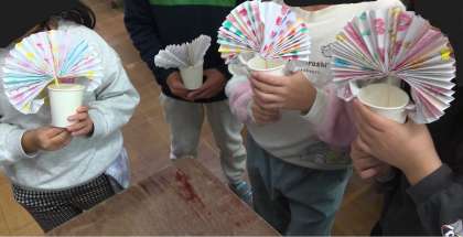 2年生 国語 紙コップ花火を作りました