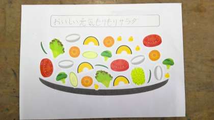 英語の学習で,野菜のサラダを作り,紹介しました。野菜の名前を英語で言って,数を聞いてみたり,好きな野菜や苦手な野菜を当てたりするクイズもしました。子どもたちは皆,上手に英語を使って交流をしていました。素敵なサラダが,教室中に沢山出来上がりました。