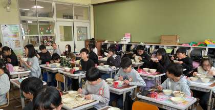 2学期最後の給食は、ビビンバとわかめスープでした。具沢山で大満足でした!とくにわかめスープが大人気で、おかわりであっという間に食缶が空になりました!楽しくおいしそうに食べていました。