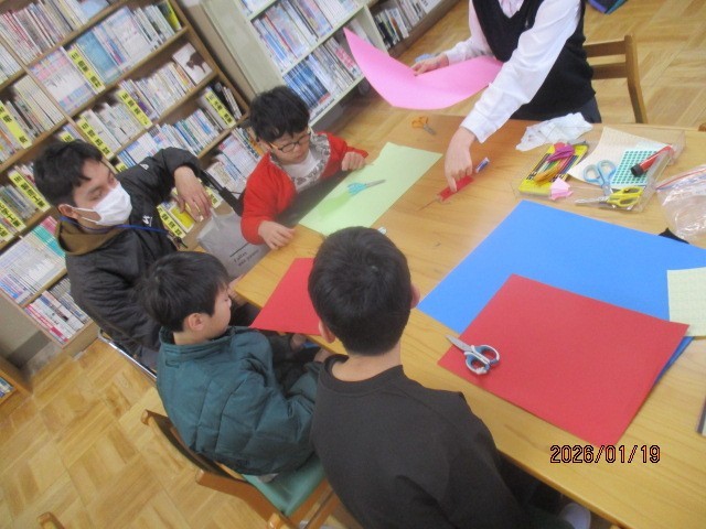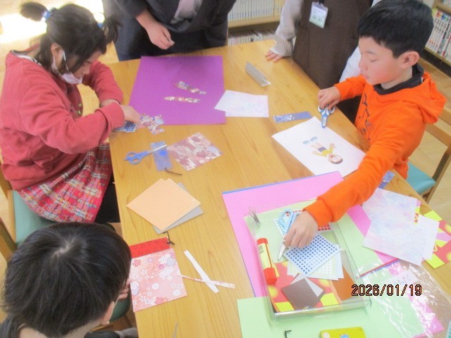 最後には、中学生の説明を聞きながら、しおりを作りました。