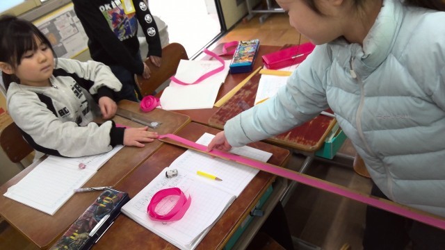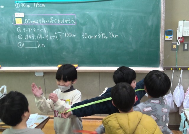 先日の2-2の自由参観では,算数の「100cmをこえる長さ」の学習を行いました。身の回りにあるものの長さを予想し,ものさしを使って長さを測りました。予想した長さとの違いに驚きつつ,しっかりと測定することが出来ていました。両手を広げた長さを測る活動も行い,より長い長さへの興味も深まっていました。三学期もそれぞれの学習をしっかりと頑張っていきたいと思います。自由参観に足を運んでいただきありがとうございました。