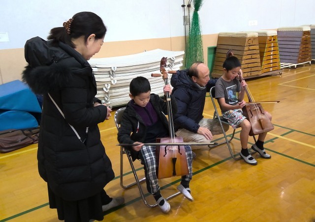 モンゴルの文化的楽器である,馬頭琴を弾かせていただきました。モンゴル語で「馬の楽器」と呼ばれるこの楽器は,「スーホの白い馬」のお話の中でも出てくる楽器として知られています。「ギターのような楽器なのかな?」「バイオリンみたいに弦がある!」という声が聞かれる中,子どもたちは丁寧に楽器の音を奏でていました。繊細な音色に耳を傾けながら,それぞれの音を楽しむことが出来ました。
