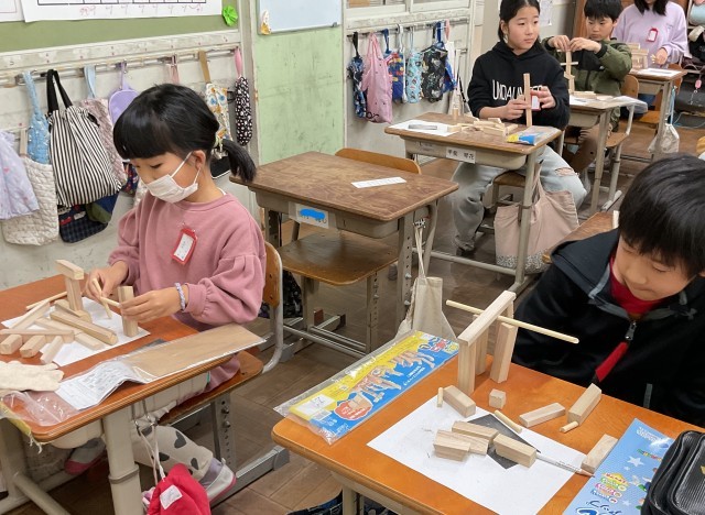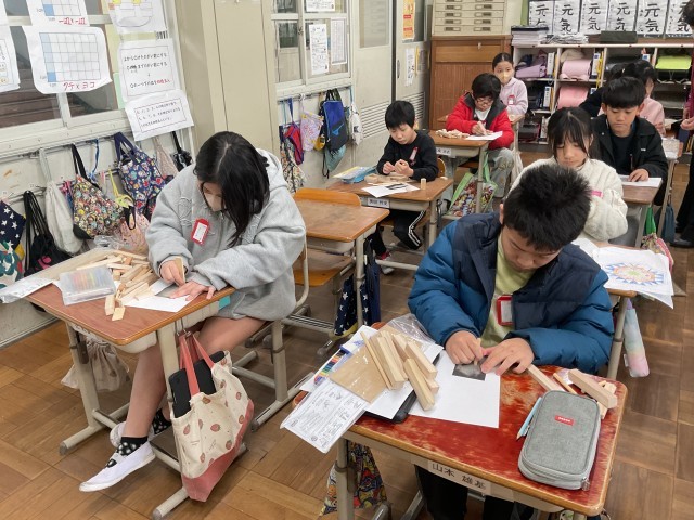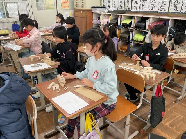 4年図画工作 のこぎりギコギコ 作品展に向けて!①
