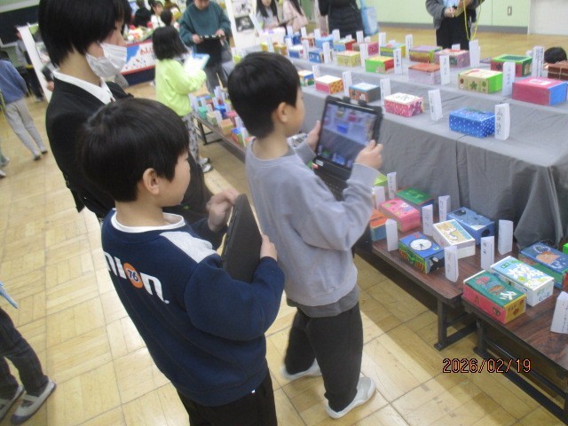 どの学年の作品も、それぞれに工夫があり、子どもたちは目を輝かせて鑑賞していました。