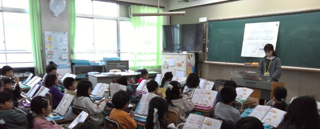 音楽の「小ぎつね」の学習では,歌を歌ったり,鍵盤ハーモニカの練習をしたりしています。歌詞を読んで小ぎつねの様子を思い浮かべたり,小ぎつねの気持ちを想像したりして,聴いている人に伝わる歌い方や弾き方を考えて演奏しています。可愛いい小ぎつねたちの優しいハーモニーが,教室中にあふれていました。