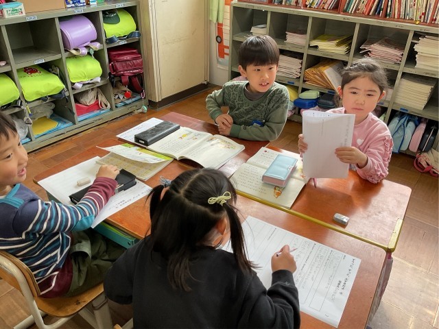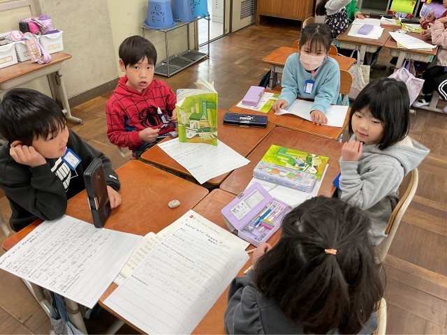 「ずうっと、ずっと大好きだよ」のお話の内容で、男の子がエルフのバスケットを、隣の家の子に上げるシーンがあります。「わたし」なら、同じようにバスケットをあげるのか、あげないのかを話し合いました。ちょうど半分ずつ意見が分かれ、それぞれ理由を説明していました。
