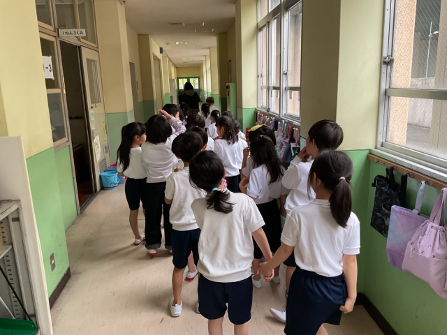 今日は身体計測がありました。計測をする場所に移動するときに、静かに並んで歩くことができていました!
