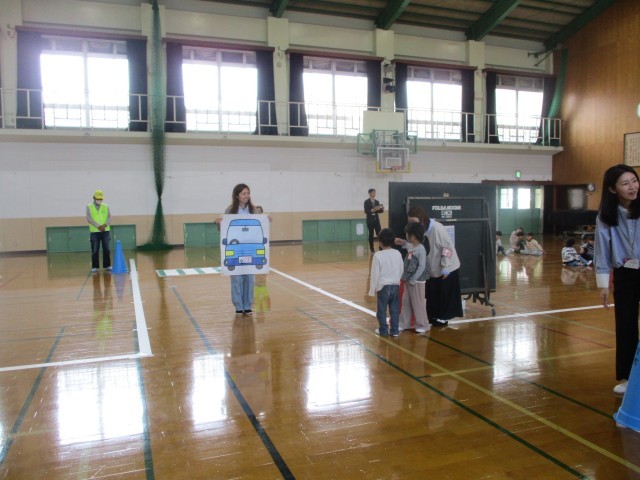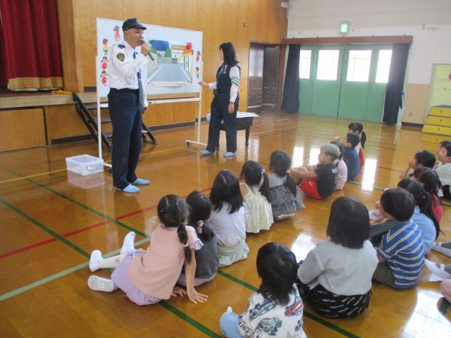 おまわりさんから、道路の歩き方や横断歩道の渡り方など、安全に過ごすために大切なお話を聞きました。