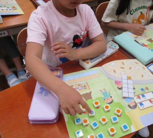 数図ブロックを上手に並べて、数の確認をしていました。