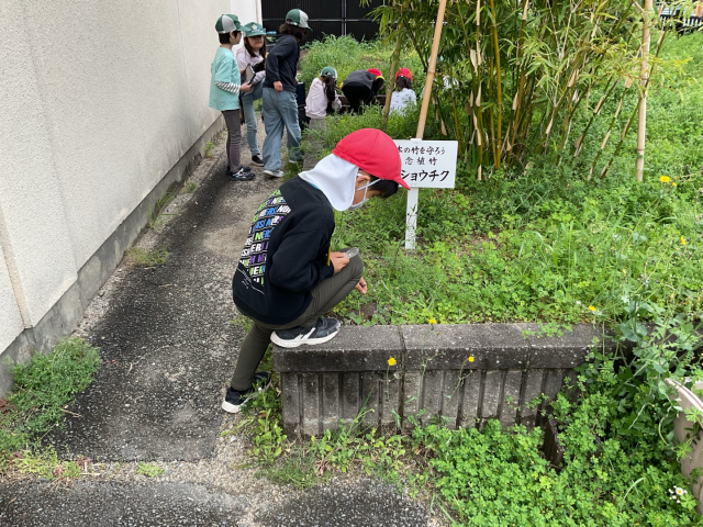 2回目の観察は、虫めがねやタブレットを持って行きました。