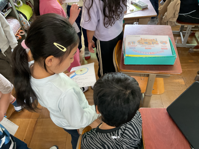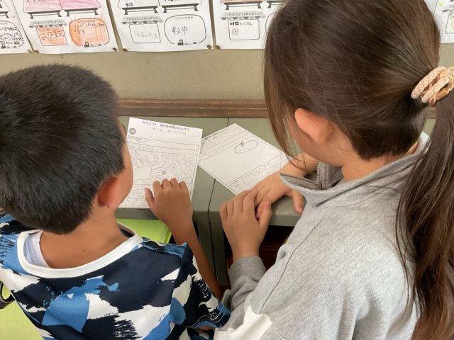 観察で見つけた生き物についてカードにまとめ、交流をしました。