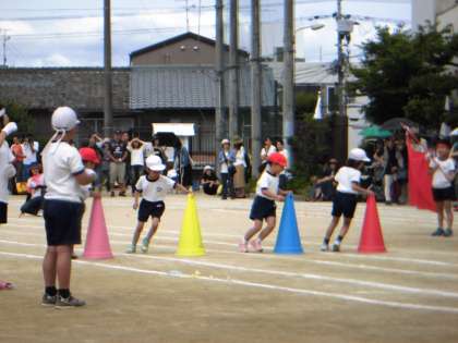 かわいい1・2年生が,とんで,まわって,くぐって,ゴールを目指します。