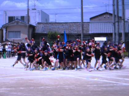 「どっこいしょ どっこういしょ ソーラン ソーラン」と,大きな声で掛け声をかけて,身体全体を使って力いっぱい踊り切りました。