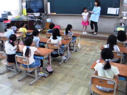 彼女はとても恥ずかしがり屋さんのようですが,1年生のみんなの拍手で温かく迎えられました。