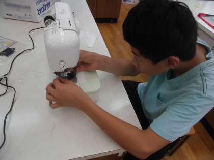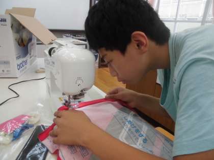 今日の4時間目にミシンを使ってエプロン作りをしました。縫い目がずれないように一生懸命縫いました。完成が楽しみですね。