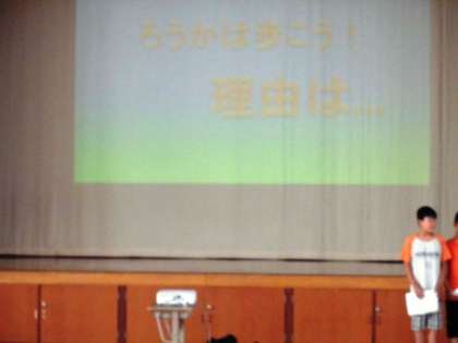 「あいさついっぱい,笑顔いっぱいの明るい学校にしましょう」と訴えました。