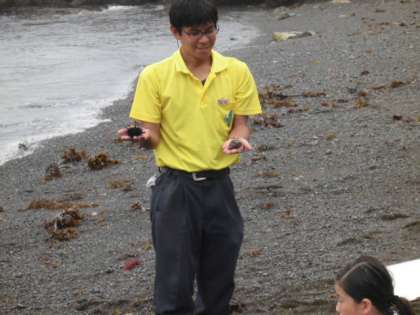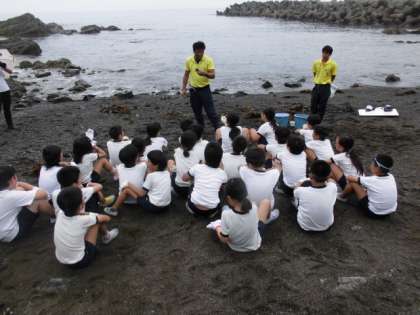 集合写真撮影後,マリンランドの学芸員の方から海にかかわる自然について学びました。