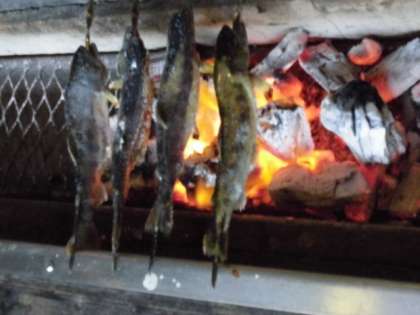 山の家2日目 魚の塩焼き&BBQ
