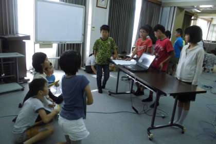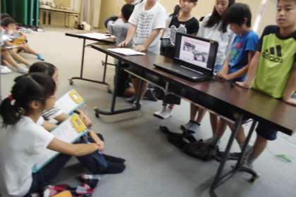 国語科で報告書の作り方を学習しました。どうせなら実際に経験したことを,しっかり相手意識を持って取り組んだ方が意欲も学習効果も高いだろう,ということで,来年山の家に行く4年生にむけて報告するというめあてを持って,学習に取り組みました。活動の中身やポイント,また反省点などを各グループで話し合いながら,報告書の形に書きまとめました。よし,じゃあ4年生にむけて発表しようかというところで,「この前の総合の発表みたいにプレゼン作った方が4年生も分かりやすいんじゃない?」とアイデアが。どうせなら良いものを!ということで各班プレゼンも作り上げ,発表を迎えました。「自分でとった魚をさばいて食べることで命の大切さを学んだ」「でも,アマゴに塩をかけ過ぎると,辛くなるので注意しよう」など,実際の画像とキーワードを盛り込んだプレゼンで4年生の関心を視覚的につかみ,報告書の内容にも一生懸命耳を傾けてくれました。