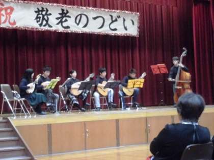 そのほかに,稲荷保育園児による歌「ありがとうの花」と組体操「京炎そでふれ!」,立命館大学マンドリンクラブによる演奏,稲寿会オカリナ部のオカリナ演奏と合唱,最後は,「紅葉」と「四季の歌」を全員合唱で幕を閉じました。
